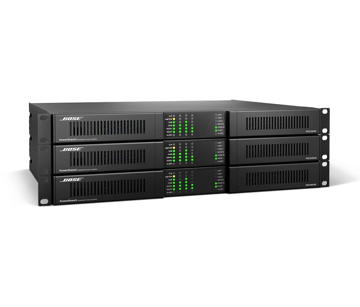 PowerShareX PSX1204D é um amplificador inteligente de quatro canais com 1200 watts, projetado para sistemas de som instalados da Bose Professional. O DSP integrado oferece acesso instantâneo a presets otimizados de alto-falantes via o software ControlSpace Designer, com integração fácil em todo o ecossistema Bose Professional, incluindo processadores, alto-falantes e controladores. O design, configuração, instalação e operação tornam-se mais simples — permitindo que você conclua o trabalho com eficiência.
